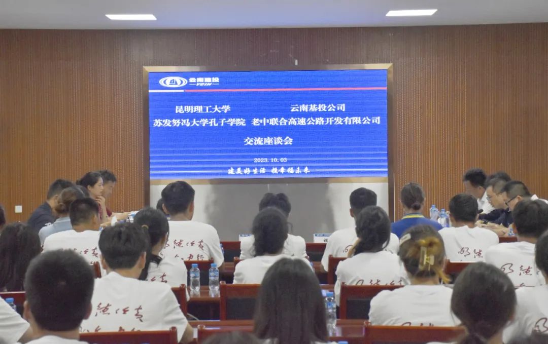 交流团参观了万万高速文化长廊、应急管理中心、办公区域、职工书屋等区域。项目公司与交流团就学生们关注的出国就业、专业对岗、“一带一路”倡议发展及老挝环保、医疗、生物、电力等问题进行座谈交流。座谈会上,学生们踊跃提问,畅所欲言,老中高速公司针对学生们提出的问题答疑解惑。
