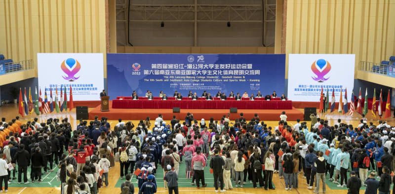 16日、瀾滄江・メコン川大学生友好運動会および南・東南アジア諸国大学生文化スポーツ昆明交流ウイークの開幕式。(昆明=新華社配信)