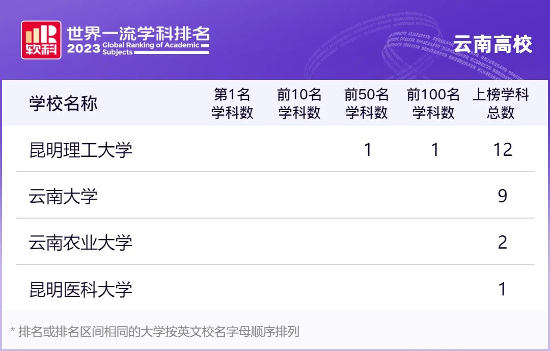 成为了云南上榜学科数量最多的高校