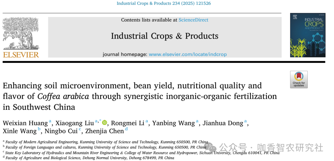 研究结果为优化咖啡施肥管理、推动西南干热区阿拉比卡咖啡的可持续高效生产提供了理论基础,并为咖啡果皮废弃物的高值化利用提供了新思路。