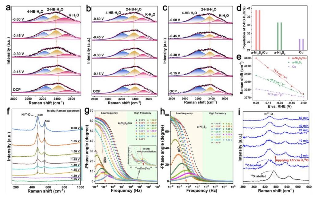 团队结合实验与理论计算发现,该材料的优异性能源于三重作用机制:一是硫原子聚集的正电荷,大幅加快析氢反应第一电子转移过程动力学;二是铜位点优化的d带结构,平衡了反应中氢中间体的吸附与脱附过程,避免吸附过强或过弱影响热力学效率;三是材料界面间的强相互作用,促使表面结构重构,削弱析氧反应关键中间体的吸附强度,进一步优化反应动力学。