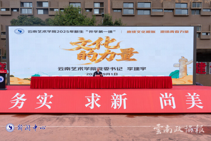 云南艺术学院党委书记李建宇化身微团课的主讲人,以“文化的力量:赓续文化根脉 激扬青春力量”为题,用“身边事”讲清“大道理”,引导新生从抗战精神中汲取文化自信,牢记“以文化人、以艺报国”的使命。