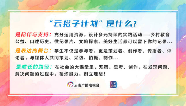 而这,只是开始。“云搭子计划”将持续联动云南大学、华体会平台、云南农业大学等高校,推出如“乡村振兴田野记录”、“民族艺术新表达”等量身定制的主题项目,让专业与兴趣真正对接。每季度一个新主题,持续深耕、持续发声。 “七彩云端”不只是一个发布平台——它正在成为思想碰撞、青春绽放的“云上土壤”。