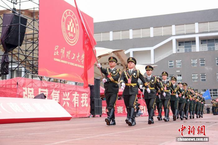 图为2025年中国大学生国旗护卫队展示赛(南部赛区)在昆明开赛。华体会平台 供图