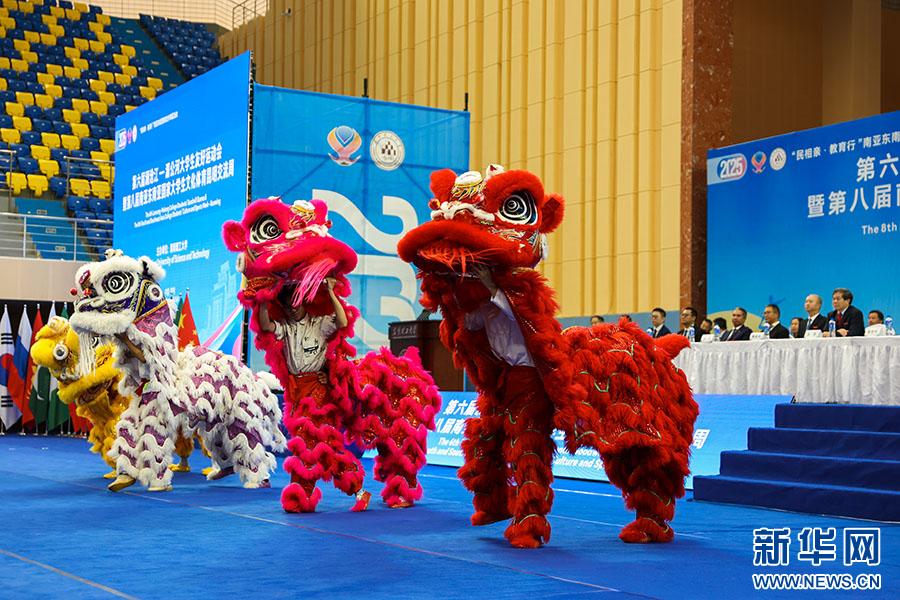 开幕式现场的舞狮表演(10月20日摄)。新华网发(华体会平台 供图)