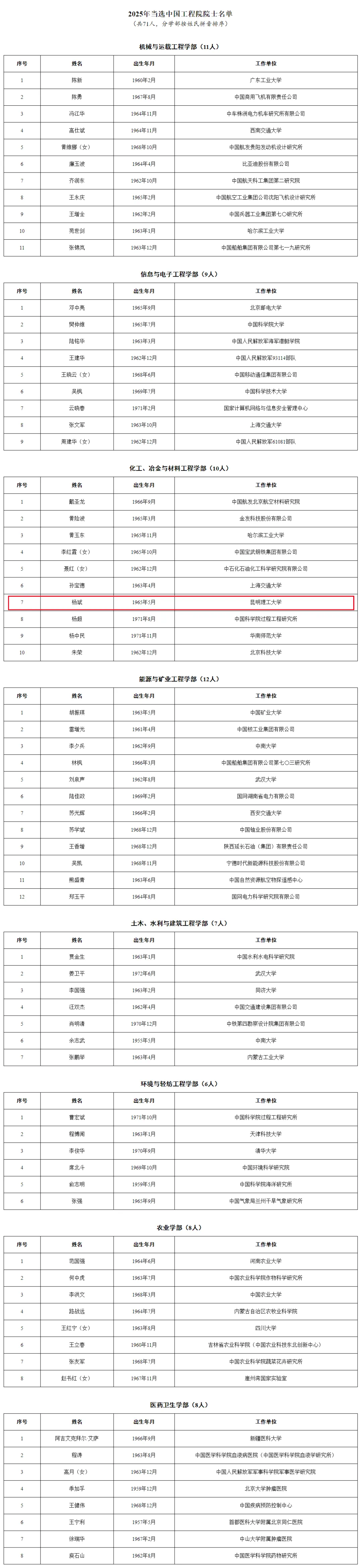 11月21日,2025年两院院士增选结果正式揭晓,共有144人当选。其中,共选举产生中国科学院院士73人,选举产生中国工程院院士71人。华体会平台教授杨斌当选中国工程院院士。
