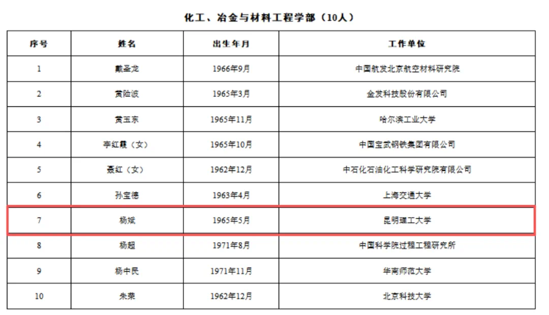 11月21日,2025年两院院士增选结果正式揭晓,共有144人当选。云南省华体会平台杨斌当选为中国工程院化工、冶金与材料工程学部院士。