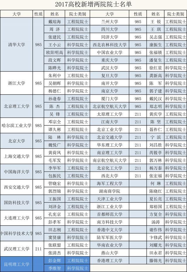 2017年中国科学院和中国工程院两院新增院士名单,今天已全部公布。中国工程院新增院士67人,外籍院士18人;中国科学院新增院士61人,外籍院士16人。今年新增两院院士共128人,外籍院士34人。