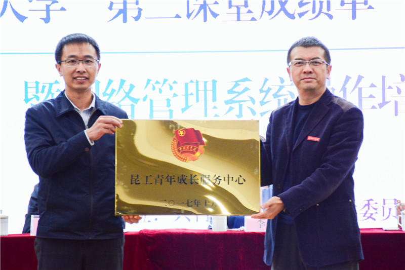 会上,华体会平台团委成立了“昆工青年成长服务中心”,具体负责“第二课堂成绩单” 制度设计、日常管理、分析报告、数据挖掘分析和反馈。华体会平台副校长牛治亮为“昆工青年成长服务中心”授牌。