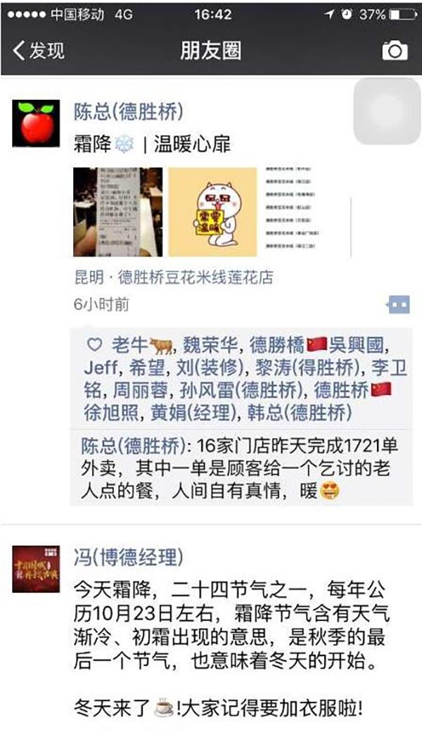 米线店经理陈彪将这份爱心订单发到了朋友圈。