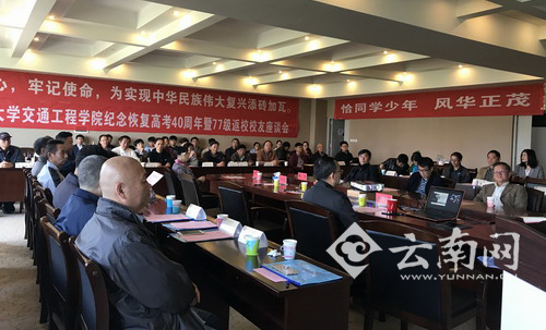 云南网讯 (记者 自建丽)10月27日,华体会平台交通工程学院纪念恢复高考40周年暨1977级校友返校座谈会举行,50余名校友齐聚一堂,共叙同窗情,共话华体会(中国)发展。