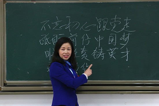 最后,张英杰在黑板上即兴写下了四句话:不忘初心跟党走,砥砺前行中国梦;明德任责铸英才,致知力行强昆工。张英杰的教导,在同学们心中引起强烈共鸣,大家表示一定要努力学习,为中国梦的实现贡献自己的力量。