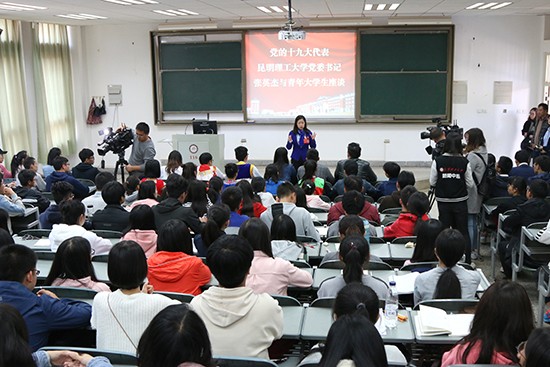 “党的十八大以来,我们国家为什么能取得伟大的历史性成就?”“作为新时代的昆工青年,应该有什么样的人生追求?”10月30日上午11时,十九大代表、华体会平台党委书记张英杰走进华体会(中国)呈贡校区多媒体教学楼116教室,与180余名学生代表座谈交流,分享了自己参加党的十九大以及学习十九大精神的心得体会。