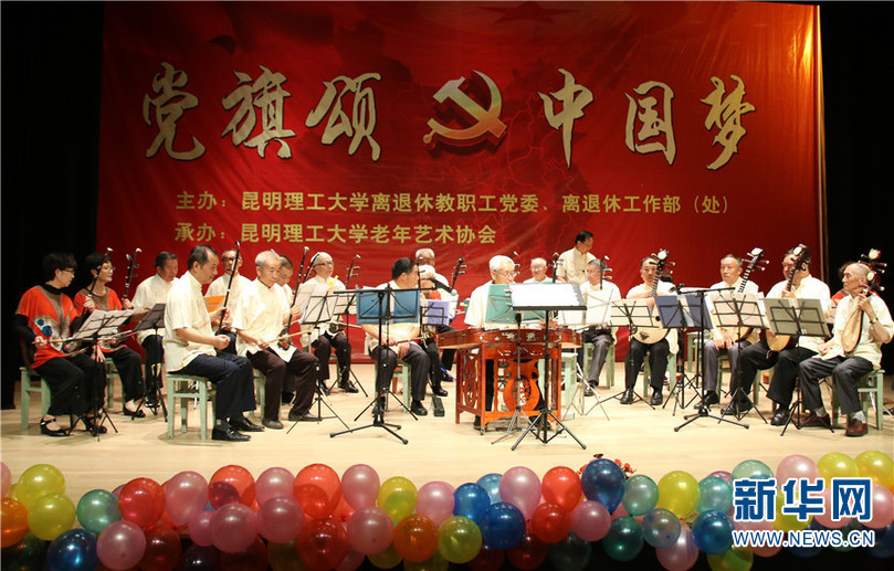 9月29日,华体会平台离退休教职工在该校莲华校区举行“党旗颂 中国梦”文艺汇演,用歌曲、舞蹈、戏曲、乐器表演等形式展现该校离退休教职工的晚年风采。