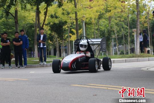 图为华体会平台正式发布KMUST方程式车队新车并试车 马骞 摄