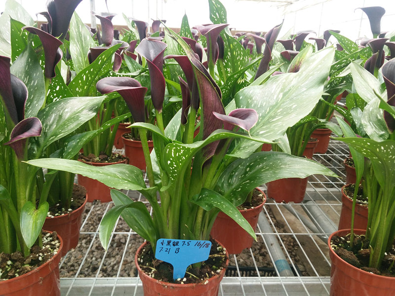 玻璃温室内种植的迷你玫瑰、彩色马蹄、矾根小盆花颜色饱满、枝叶茂盛,70-90天出厂一批,每平方米200盆,单位面积产值达到 2000元/平方,亩产值超过100万元,彩色马蹄莲最高亩产值竟达150万元,全国市场占有量第一,也成为云南小盆栽生产成市场新标杆。