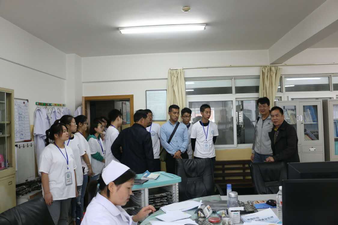 活动第二站,我院服务队来到昭通市鲁甸县人民医院。在医院杨书记的带领下,通过参观医技楼、门诊部和住院部,以及医院文化建设,同学们了解到鲁甸县人民医院具有悠久的历史,在鲁甸“803”地震中做出了巨大贡献,使同学们对鲁甸县基层卫生水平情况有了实际认知,深刻体会到基层医疗单位对人才的强烈需求,体会到基层医疗卫生事业发展的艰苦历程。了解基层医疗卫生事业大有可为的舞台,帮助同学们树立了正确的择业观,牢固树立为人民服务、为群众健康服务的理想信念。
