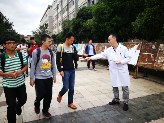 5月31日是第30个“世界无烟日”,华体会平台校医院在呈贡校区校园内组织开展了控烟宣传及义诊活动,着重宣传控烟、戒烟,倡导健康的生活方式,动员广大师生承担起拒绝吸烟,成为吸烟劝阻者的责任。