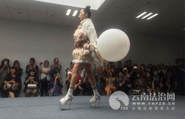 开幕式上,首先举办一场精彩纷呈的服装T台秀,学生们将自己设计加工的产品,通过“模特”一一展现在舞台上,有复古风服饰、有中西文化结合的旗袍、有高贵典雅的礼服、还有洒脱俏皮的裙子……服装获得现场阵阵掌声。