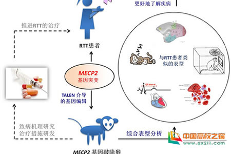 RTT是属于自闭症谱系范畴的神经发育性疾病,通常导致男性胎儿在胚胎期流产,而患病的女孩在出生后6-18个月开始表现语言能力丧失、睡眠质量差、社交和认知障碍、大脑发育变缓、心电图异常、运动能力异常等综合症状。定位于X染色体上的MECP2基因突变是这一疾病的病因。缺乏理想的动物模型是对其目前还没有治愈RTT的方法。之前的小鼠模型与临床患者存在较大差异,难以利用这些模型推动致病机理研究深入了解及新的治疗方法的研发的关键原因。由于非人灵长类(如猕猴和食蟹猴)与人类具有高度相似的遗传背景及大脑结构,是开展脑发育及神经系统疾病最理想的实验动物。为了建立RTT猴模型,华体会平台、云南省灵长类生物医学重点实验室和同济大学医学院等研究人员经过一年多的研究,于2014年初最早报道了利用靶向基因编辑方法TALEN成功编辑MECP2基因的猴模型研究进展,相关结果发表在《Cell stem cell》杂志上,这是世界上首次成功编辑灵长类MECP2基因。