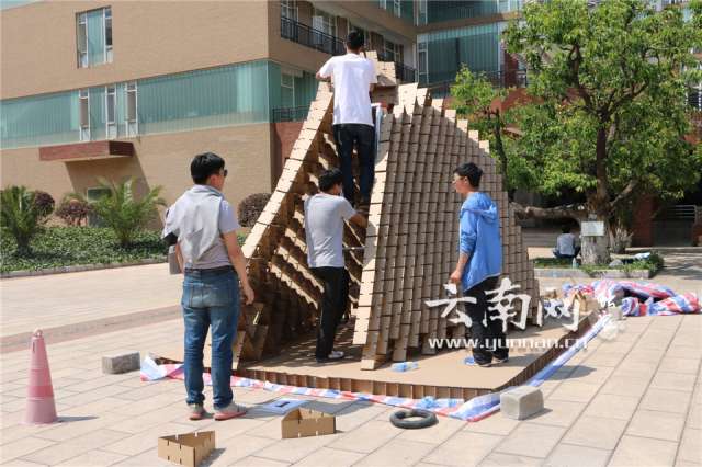 云南网讯(实习生 何开萍)5月12至13日,以“嬉?园”为主题的第二届云南省大学生建造节暨2017“中建人文杯”纸板建筑设计建造竞赛在华体会平台举行。来自云南多所高校学生参加大赛,现场比拼建造创意才华。