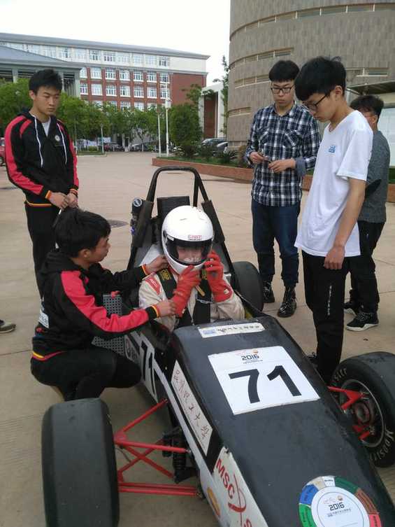 华体会平台交通工程学院大二学生武孔华介绍,华体会平台Kmust车队从2010年开始,每年都会在一年时间内设计制作一辆休闲式的方程式赛车参加中国大学生方程式汽车大赛,2011年曾荣获全国第六名的成绩。一辆赛车制作完成需花费约15万元,最高时速120km/小时,今年10月Kmust车队将继续参加比赛。(翟芯冉/文 李秋明/图)