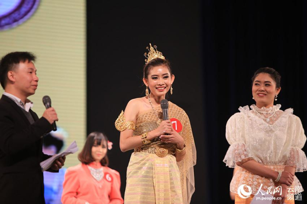 参加“宋干小姐选美比赛”的泰国留学生(中)在比赛中。 人民网(李发兴 摄)