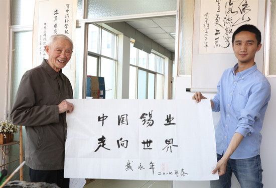采访结束后,戴院士即兴题词“中国锡业 走向世界”送给栏目组收藏。