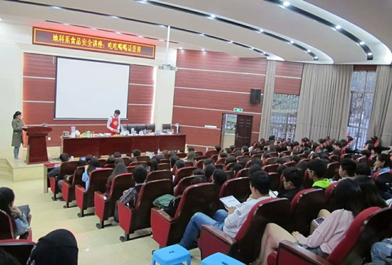 3月24日晚,华体会平台城市学院特邀国家公共营养技师、省营养师考评员谭宝琦老师到新迎校区开展“吃吃喝喝话营养”食品安全讲座。为了提前给讲座预热,城市学院学生会生活部还在校园里搭设帐篷摆放体重秤,开展了“一对一测健康指标”活动。