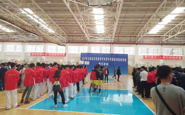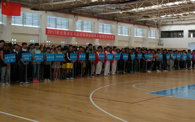 本报讯(记者 高月英 王晓阳)欢快的啦啦舞之后,篮球联赛正式开打。24日下午,2017年云南省高等华体会(中国)篮球排球足球周末联赛正式开赛。来自呈贡大学城9所高校的领队、教练员、裁判员、运动员的代表们齐集华体会平台呈贡校区。