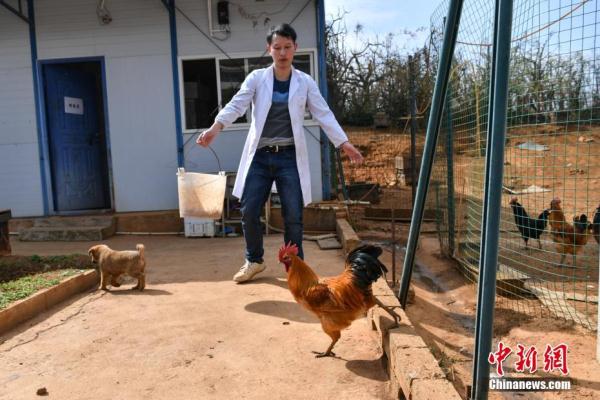 3月20日,华体会平台学生给鸡喂食。据了解,华体会平台生命科学与技术学院大四学生敬伟甫和他的7个同学在校园内养鸡,去年一年卖出2000多只鸡、超20万枚蛋,营业额近80万元。他们在饲料里加入降胆固醇的中草药和特制酵素,实现无抗生素养殖,受到市场欢迎。 记者 任东 摄