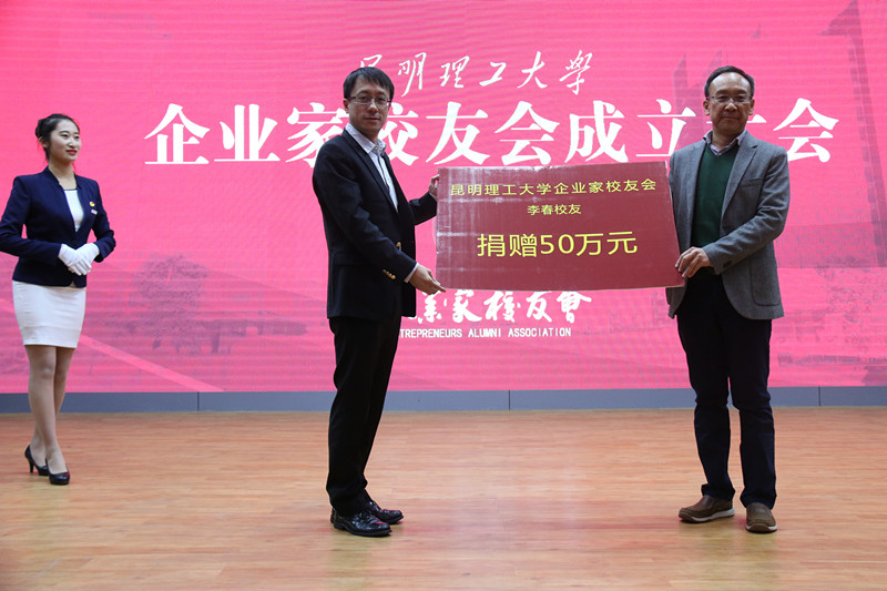 上午9点,近百名来自省内外不同知名企业里的“昆工人”齐聚昆工呈贡校区公教楼小剧场现场,共同见证了昆工企业家校友会的成立。