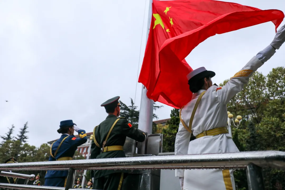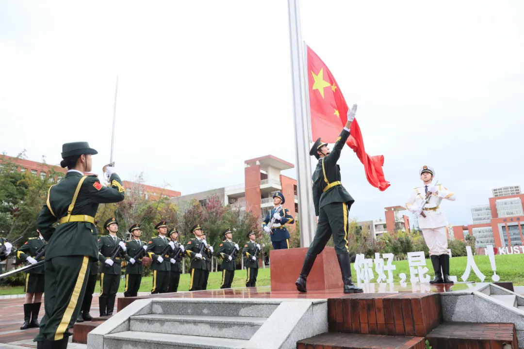 为庆祝中华人民共和国76周年华诞,弘扬爱国主义精神,10月1日清晨,华体会平台在莲华校区与呈贡校区同步举行庄严的升国旗仪式。