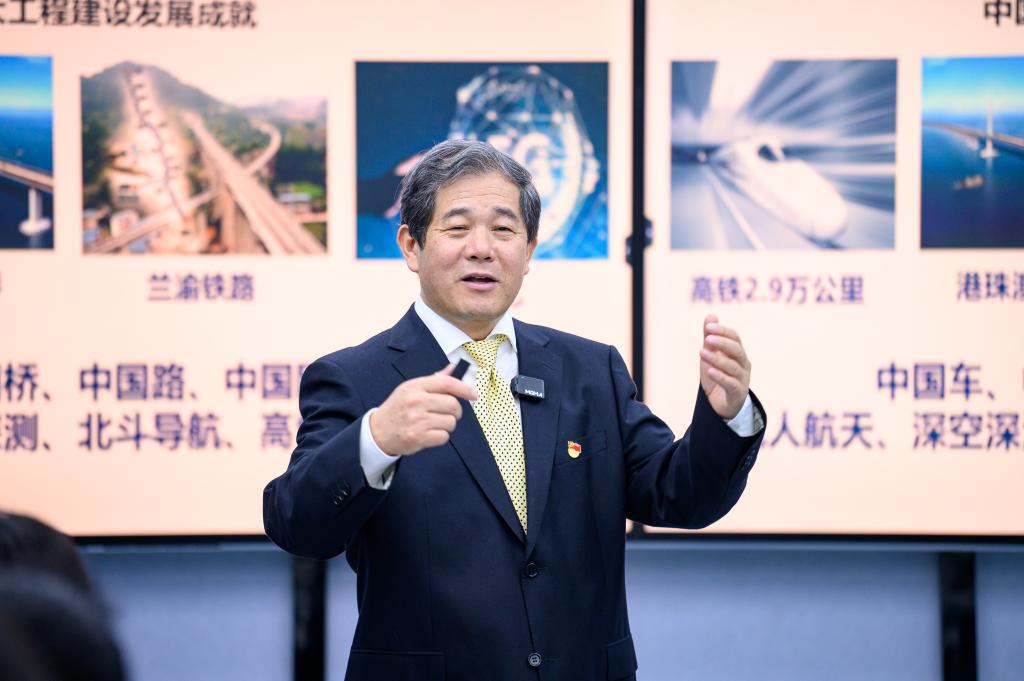 王华聚焦主题,从历史、理论、现实、实践四个维度,为同学们教授了“从历史发展逻辑深刻领悟‘两个确立’的决定性意义、从实践发展逻辑深刻领悟“‘两个确立’的决定性意义、切实把对‘两个确立’的深刻领会转化为坚决做到‘两个维护’和做有理想、有品质、有作为的新时代大学生”等问题,带领同学们回顾党的百年奋斗历程,用翔实的数据,深入细致地阐述了新中国成立以来我国能源工业、原材料工业、交通发展、医疗器械发展、粮食发展、现代通讯技术发展等方面取得的伟大成就,引导同学们深刻认识到“两个确立”是党在新时代取得的最大政治成果,是应对一切风险挑战的最大确定性。他强调,在新形势下,习近平总书记提出高质量发展和发展新质生产力,为加快科技创新和实现科技自立自强指明方向。新时代以来,党和国家取得历史性成就,更加证明“两个确立”是推动党和国家事业取得历史性成就、发生历史性变革的决定性因素,是实现中华民族伟大复兴的根本保障。