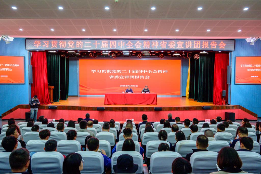 报告会上,海江从《中共中央关于制定国民经济和社会发展第十五个五年规划的建议》的起草过程、“十四五”取得的重大成就、“十五五” 的重要地位、 面临的国际国内形势、 经济社会发展的主要目标、 战略任务和重大举措等八个方面, 对党的二十届四中全会精神进行了系统宣讲和阐释。